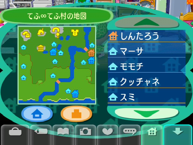 自分の住む「てふ∞てふ村」です。 ゲームキューブ、DSでのどうぶつの森は 自分の住める家は真ん中のみだったけど、 今回Wiiでは違う場所にも選択肢があるから、 店やらなんやらと近く、かつ真ん中ではない場所を 選んでみました。 自分の村は「みかん」産地でしたが、 ゲームを買った当日に友人と コネクトしまして、 今は「なし」園となりました。 けど、本当はももが欲しい。 色味的に。 |